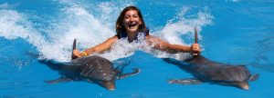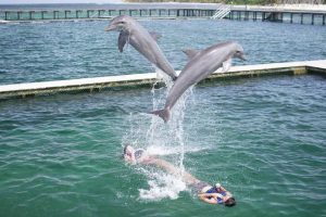 You can enjoy all the activities with the dolphins, even if swimming is not your thing, because there is a platform where you can stand while the dolphins approach you to give you a handshake, a kiss and a hug.