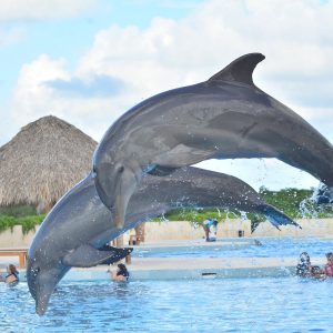 Dolphins are known for their playful nature, something they truly portray at Dolphin Discovery Punta Cana.