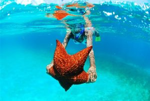 We leave at 9:00AM from the public beach of Dominicus Americanus by speedboat or Catamaran and head towards the famous Saona Island. Accompanied by the charming Caribbean rhythms we will have our first stop at the Natural Pools, a huge area of crystal clear and shallow waters, home to the Caribbean starfish. Music, various drinks and rum will add to the fun and pleasure as we spend around 40 minutes bathing in this little paradise.