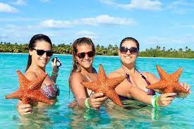 We leave at 9:30AM from the public beach Bayahibe by speedboat or Catamaran and head towards the famous Saona Island. Accompanied by the charming Caribbean rhythms we will have our first stop at the Natural Pools, a huge area of crystal clear and shallow waters, home to the Caribbean starfish. Music, various drinks and rum will add to the fun and pleasure as we spend around 40 minutes bathing in this little paradise. Then, leaving the natural pools, we pass through the mangrove area and the Catuano channel, the division between the main Dominican island and Saona, and we head to one of the most beautiful beaches called Saona Paradise, arriving around 11AM . The beach is very spacious and clean, it offers sun loungers (free), bathrooms (male and female), showers, open bar (Coca Cola, Sprite, water, orange juice, coffee, rum, beer). Our lovely photographers will be at your disposal in case you want a professional photo session on the island (paid for at the end of the tour).